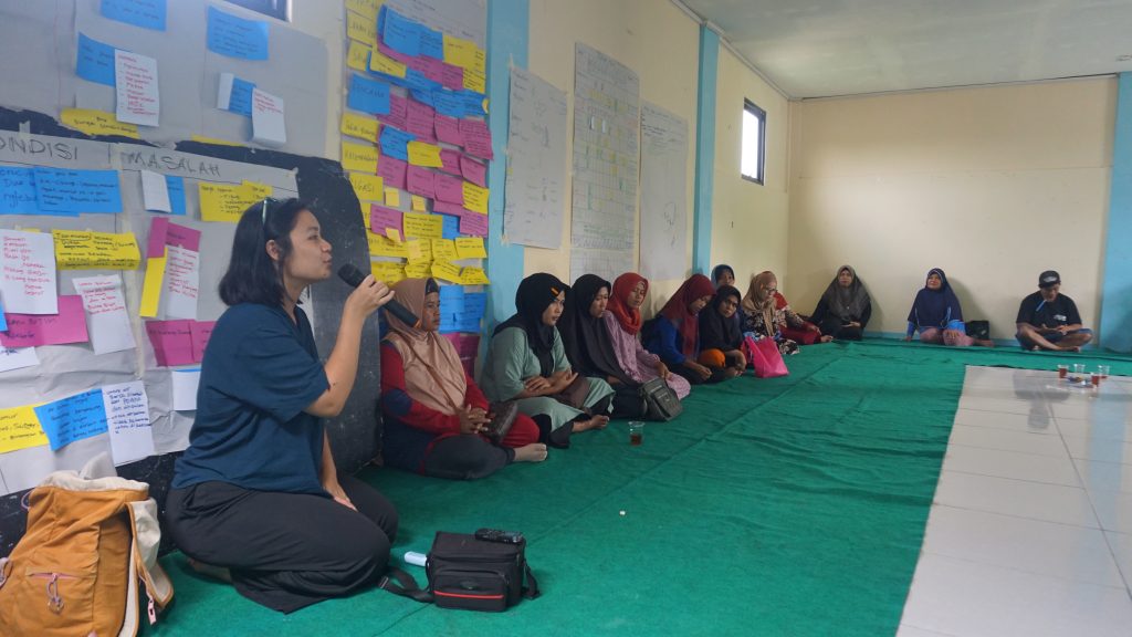 “Sekarang musim hujan datangnya tidak bisa diprediksi, kadang musim tanam sudah mulai, eh malah kering, gagal panen. Kita bingung, “ujar salah satu peserta, Purwati, saat sesi diskusi kelompok.