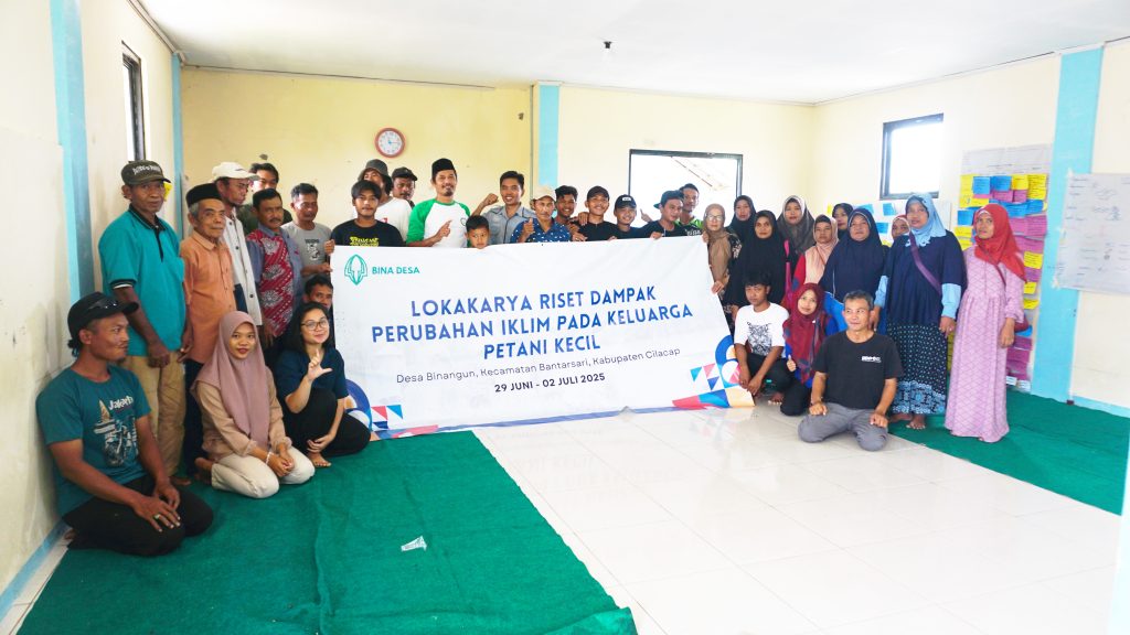 Cilacap | Perubahan iklim kian nyata menghimpit kehidupan petani kecil di berbagai daerah. Untuk memetakan dampak langsung dari krisis iklim terhadap keluarga petani, Bina Desa bersama Komunitas Swabina Pedesaan (KSP) Sidamakmur menggelar Lokakarya Pengambilan Data Primer sebagai bagian dari rangkaian Riset Perubahan Iklim. Kegiatan ini berlangsung selama empat hari, mulai 29 Juni hingga 2 Juli 2025, di Desa Binangun, Kecamatan Bantarsari, Kabupaten Cilacap, Jawa Tengah.
