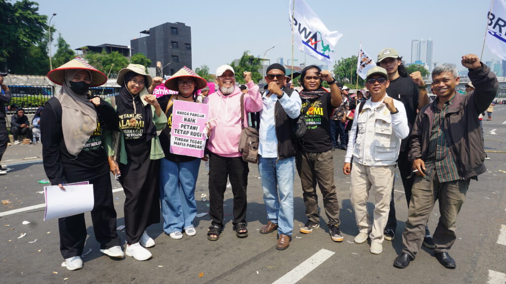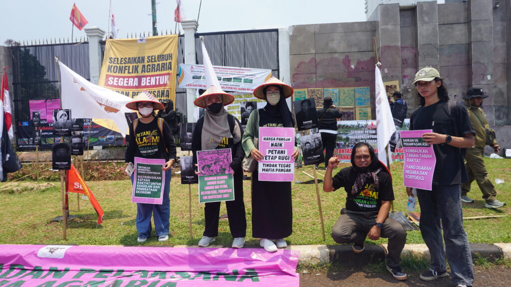 Dalam aksi tersebut, peserta menegaskan tuntutan agar pemerintah melaksanakan reforma agraria sejati dan memperhatikan nasib petani kecil yang menjadi penopang utama pangan nasional.