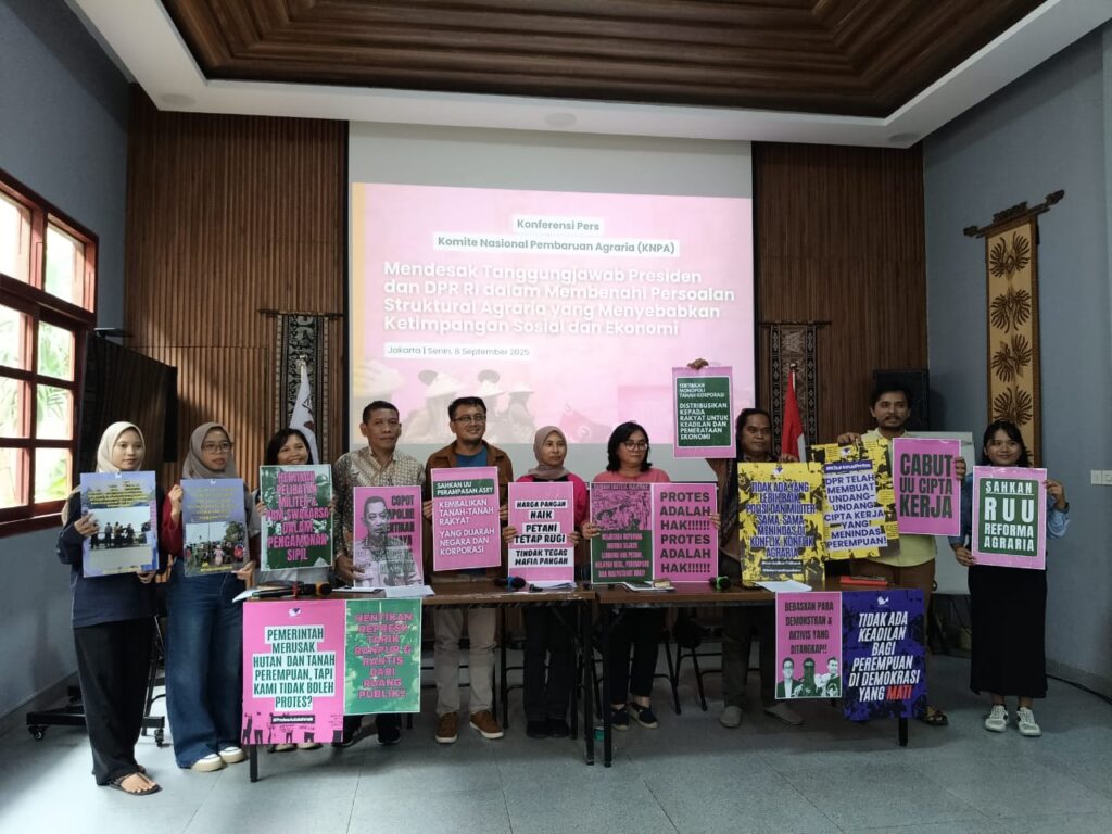 PERNYATAAN SIKAPKOMITE NASIONAL PEMBARUAN AGRARIA (KNPA) Jakarta, 08 September 2025 Komite Nasional Pembaruan Agraria (KNPA) menyatakan keprihatinan pada situasi krisis politik dan demokrasi yang terjadi beberapa waktu terakhir, yang mengakibatkan ribuan orang ditangkap dan 10 orang warga-massa aksi meninggal. Tindakan anarkis dan brutal aparat keamanan dalam menangani aksi demonstrasi yang terjadi pada 40 kota/kabupaten di
