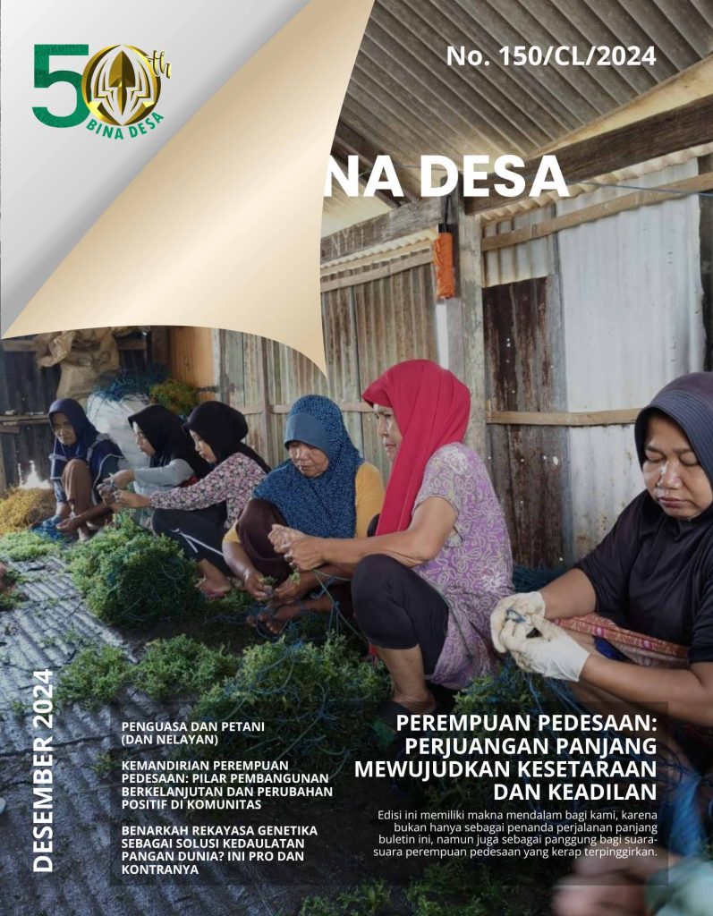 Perempuan pedesaan juga mengalami penindasan secara berlapis. Perempuan tani seringkali mengalami kekerasan dalam bentuk pemaksaan menggunakan benih/pupuk/pestisida tertentu buatan pabrik serta menggantikan peran mereka dengan teknologi baru atau mesin yang dirancang tidak untuk perempuan. Pada buletin edisi 134 ini mengangkat tema dinamika kemandirian perempuan pedesaan, dengan semangat persaudaraan perempuan, kita wujdukan kehidupan yang berkeadilan. Selamat